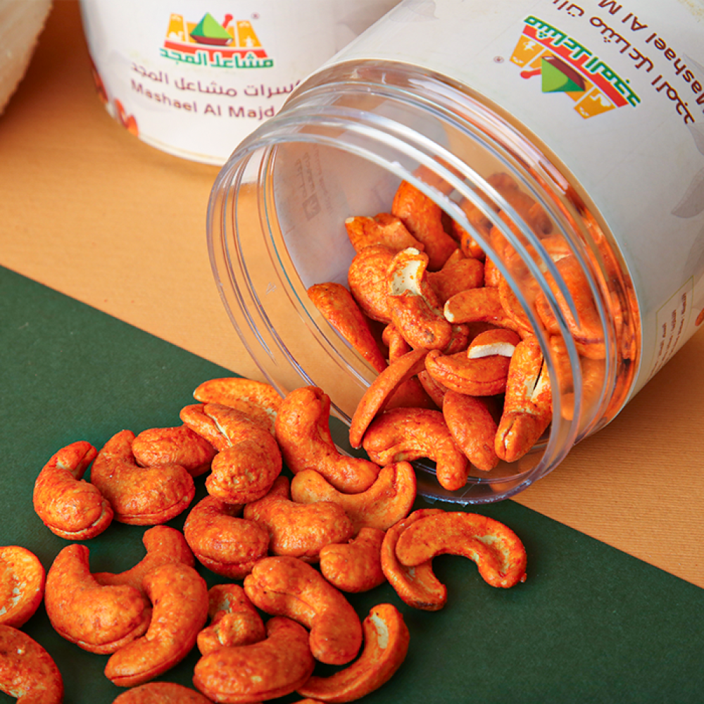كاجو محمص بالجبنة بتوابل الجبنة اللذيذة التي تضفي طعماً غنياً ومختلفاً على كل قضمة و مع الكاجو الجبنة،