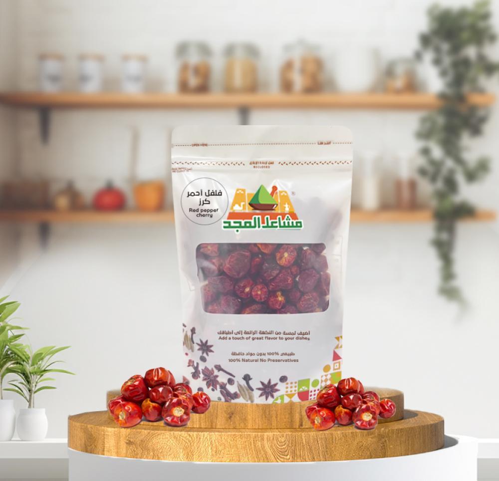 فلفل أحمر كرز هو توابل فريدة تأتي على شكل حبوب صغيرة باللون الأحمر الزاهي، تتميز بنكهتها الفريدة التي تمزج بين الحلاوة والحرارة. تستخدم هذه التوابل لإضافة طابع مميز ونكهة غنية إلى مجموعة متنوعة من الأطباق، بما في ذلك السلطات والأطباق الرئيسية والمقبلات. تقدم الفلفل الأحمر الكرز لمسة من الدفء للأطعمة، وتعتبر إضافة ممتازة لتنويع نكهات وجباتك.